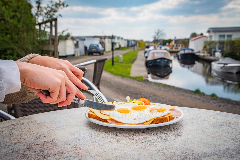 Zowel buiten op ons fraaie terras middenin het mooie natuurgebied De Wieden als binnen in de
